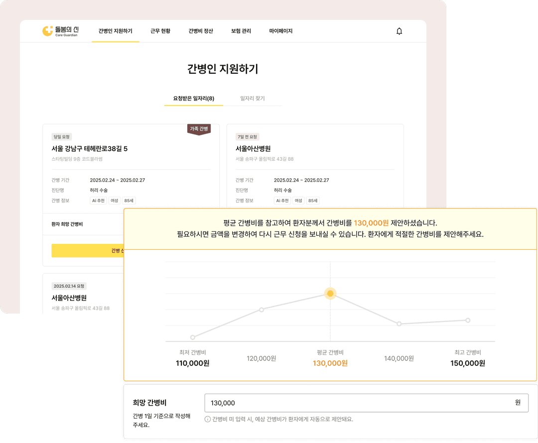 환자 상태를 확인한 후, 희망 간병비를 직접 제안할 수 있습니다.