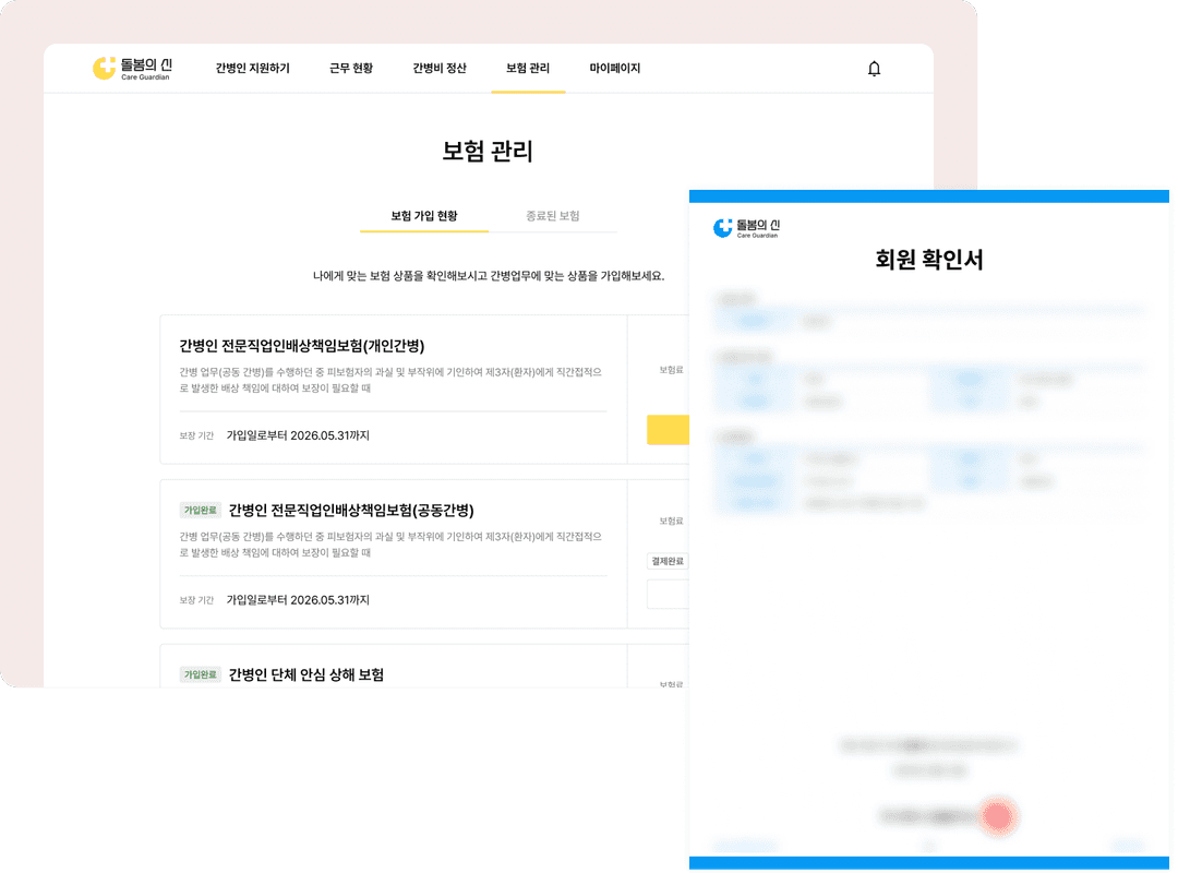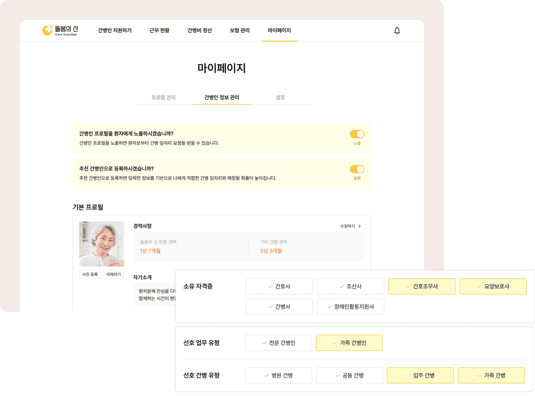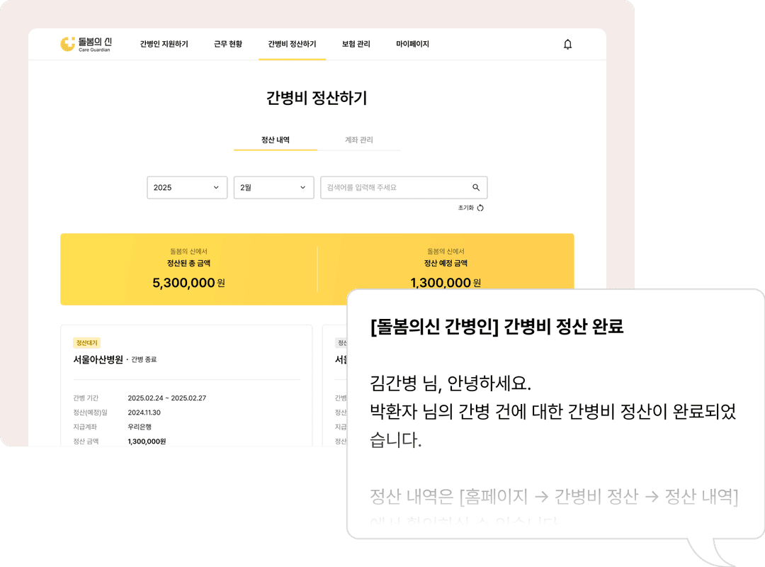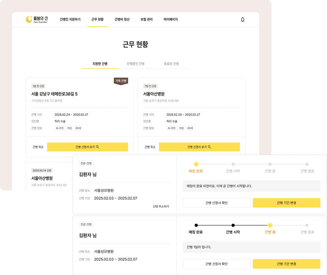 경력 관리와 피드백 확인을 위한 간병 기록이 자동으로 저장됩니다.